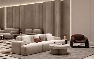 Универсальное пространство для вдохновения и отдыха, где деловая энергия встреч плавно перетекает в уютный вечер с друзьями.