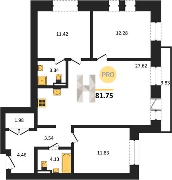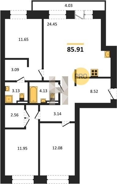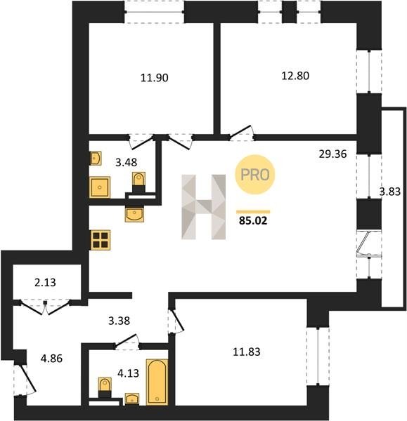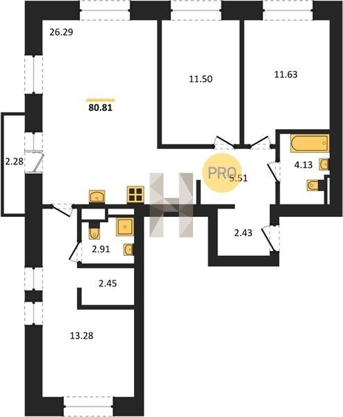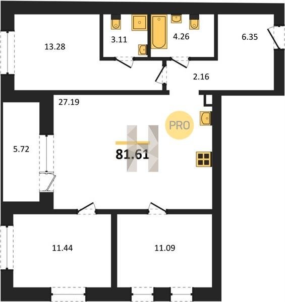 Площадь от 78.08 м2