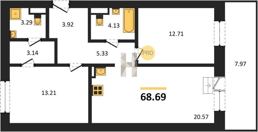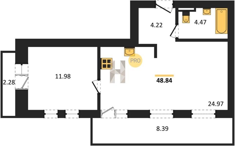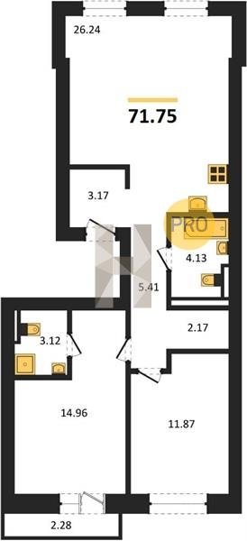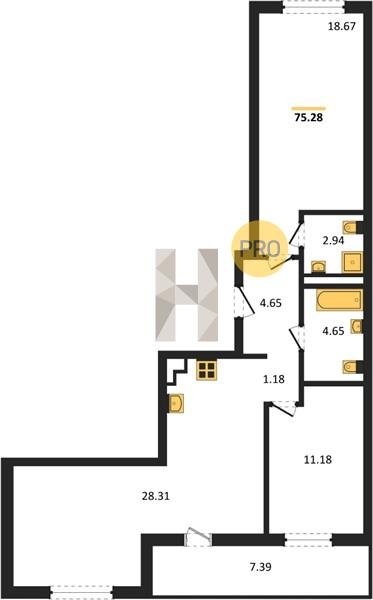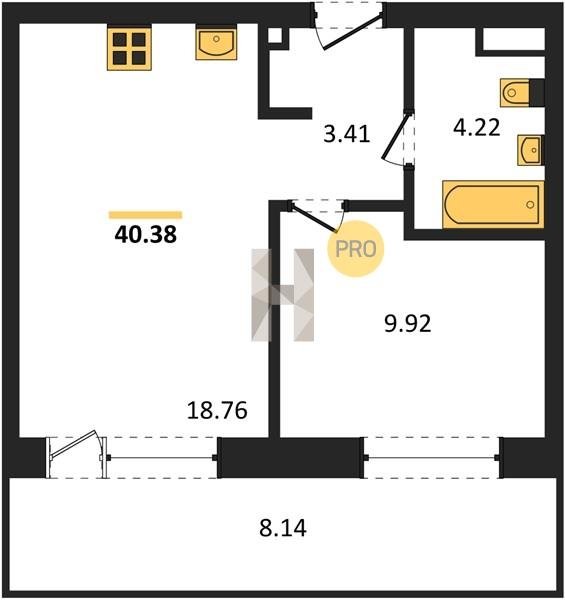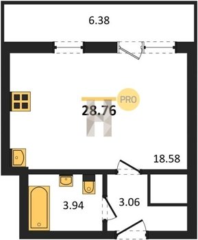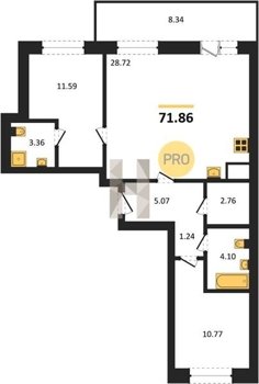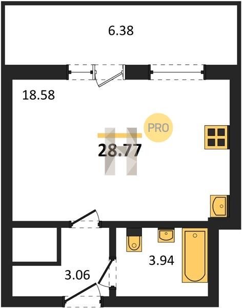 Площадь от 28.76 м2