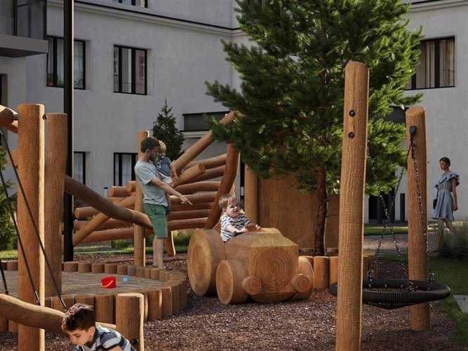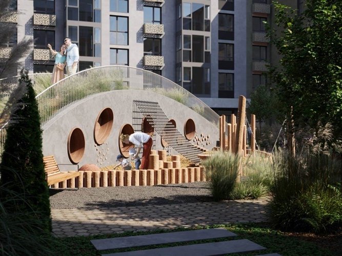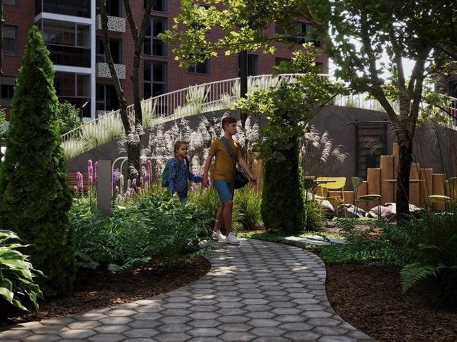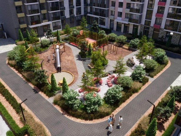 Безопасные дворы без машин погружены в «зеленый мир» растений, а игровые площадки спроектированы по принципам нейродинамики для гармоничного развития детей.