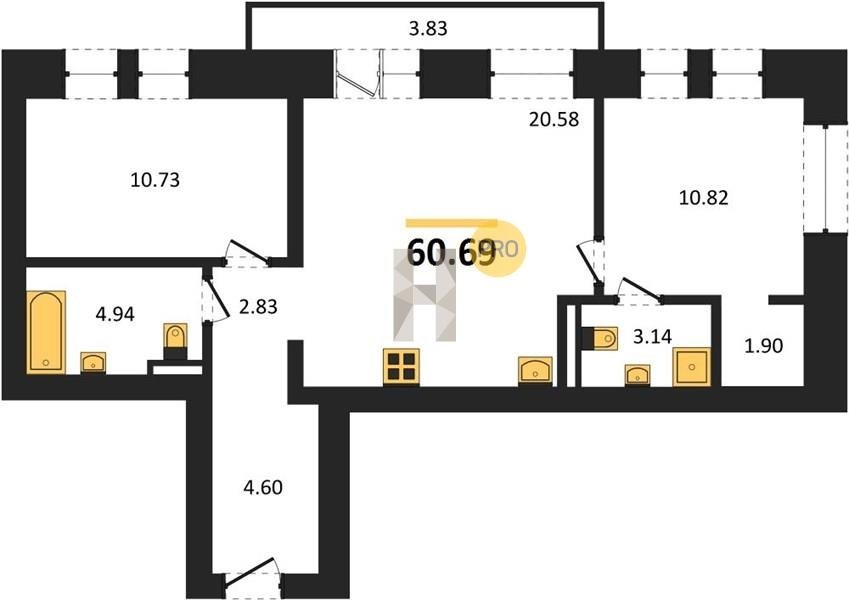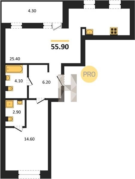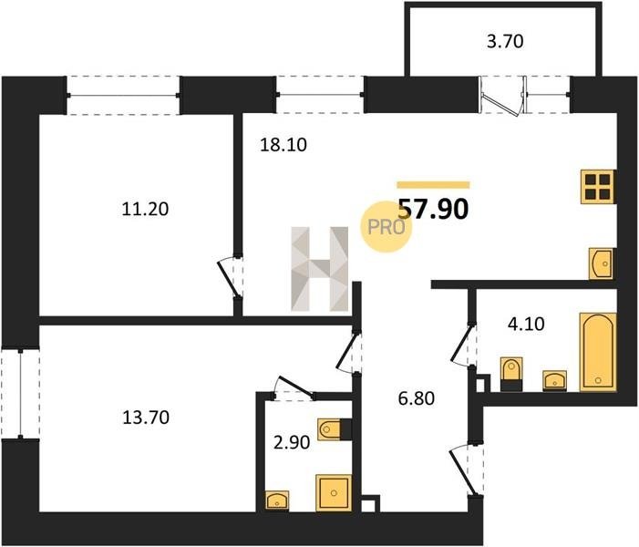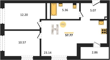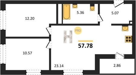Площадь от 57.78 м2