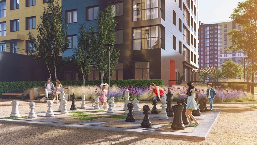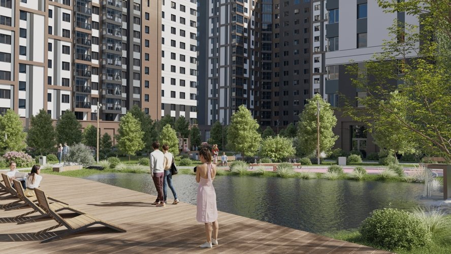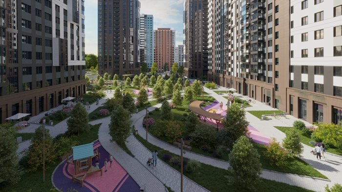 Вдоль кварталов обустроены уютные променады с магазинами, кафе и всеми необходимыми сервисами для комфортной жизни.