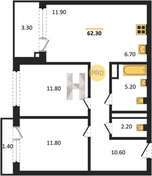 Площадь от 65.7 м2
