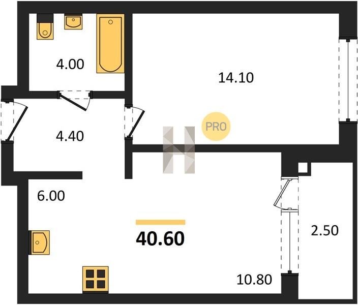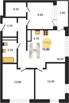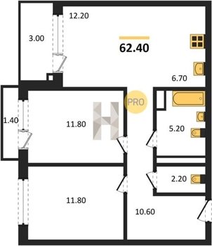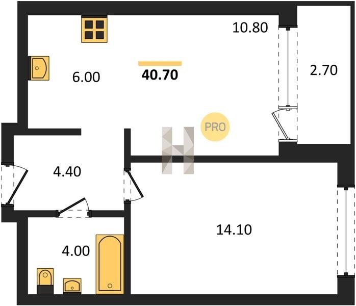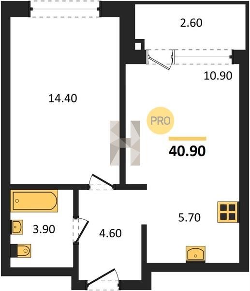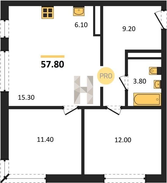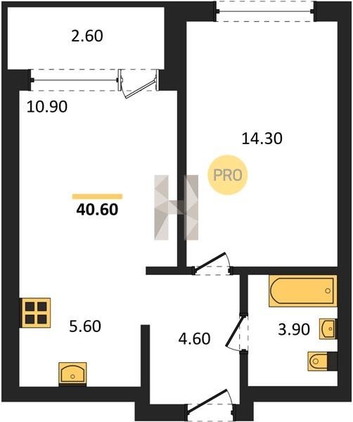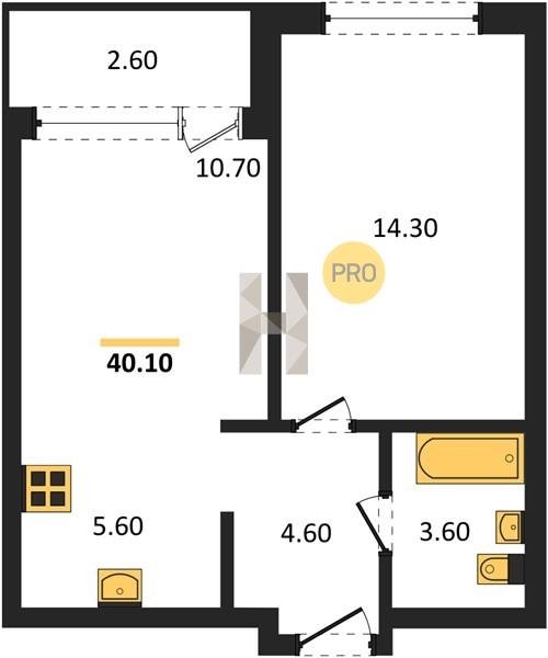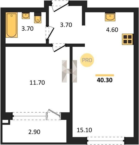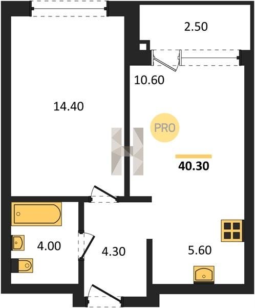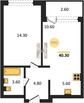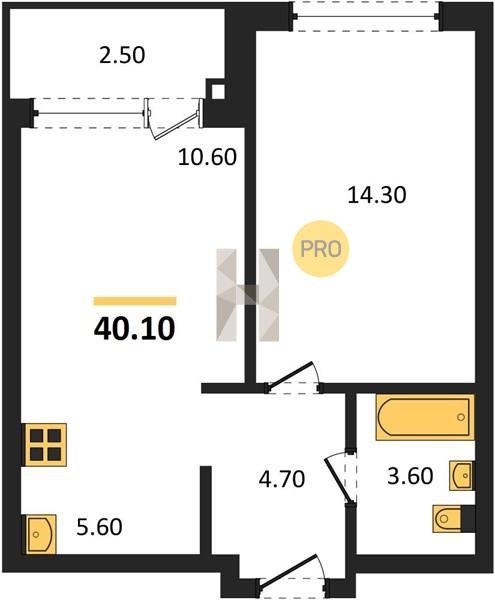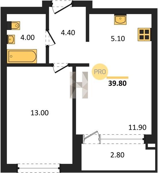 Площадь от 39.8 м2